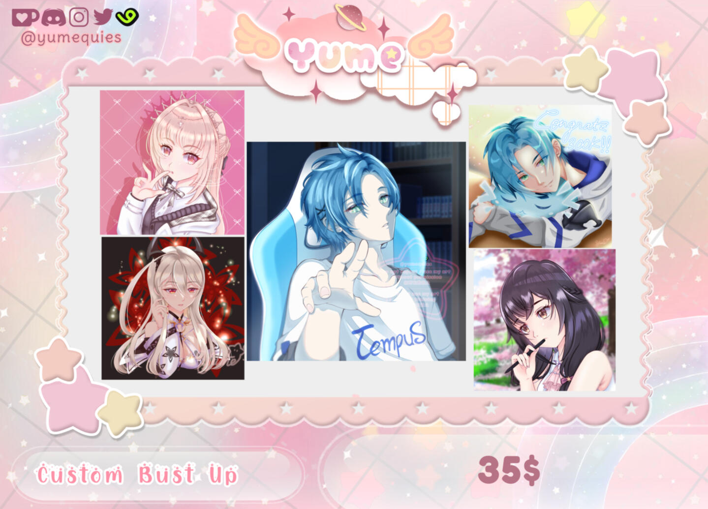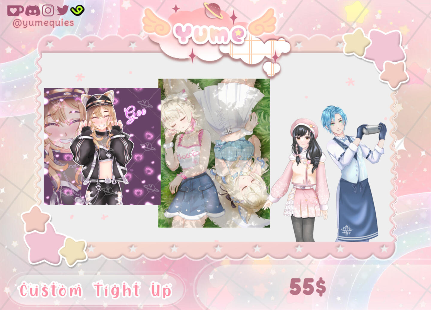 Please make sure you agree to my TOS before requesting a commission to me!! Failing to follow my rules will lead into distrust and you may be rejected when requesting a commission! If what you’re looking for isn't listed here, feel free to ask me a question!❃ Commissions takes about 2 days - 2 weeks to finish depends on complexity and waiting list.